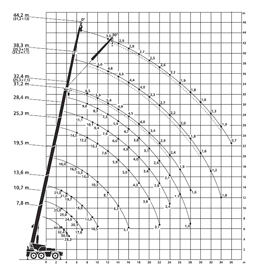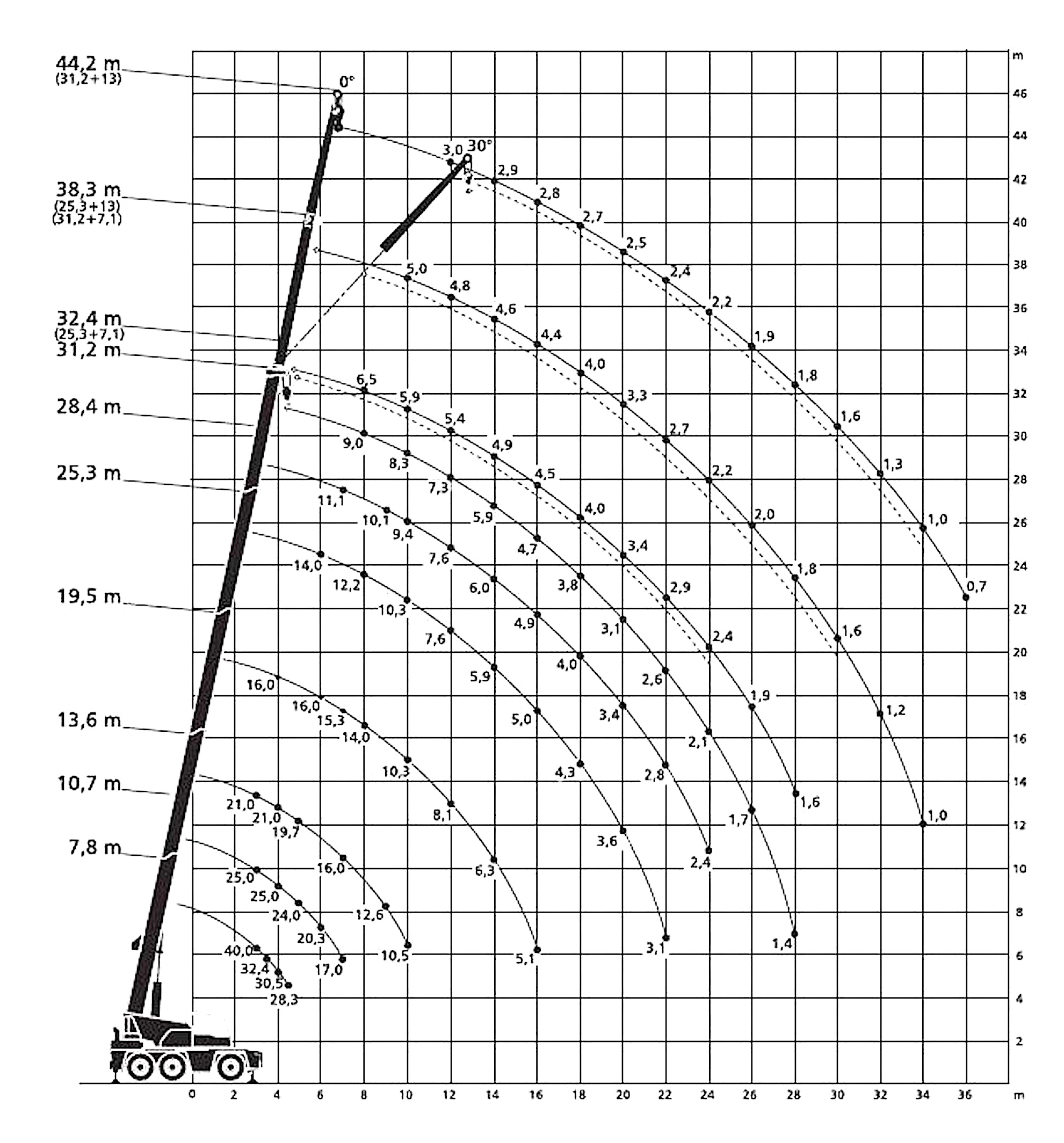 max. vyložení: 36,0 m (700 kg)