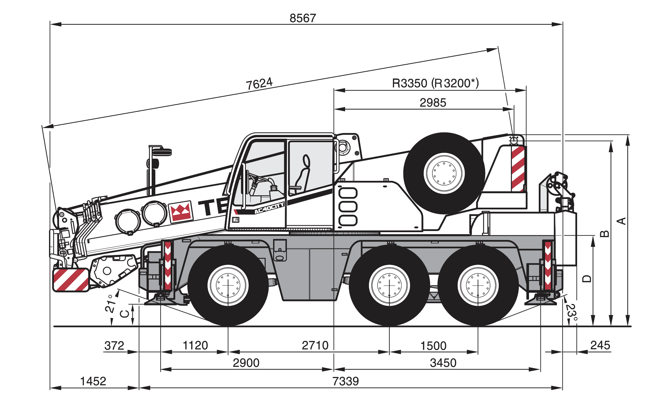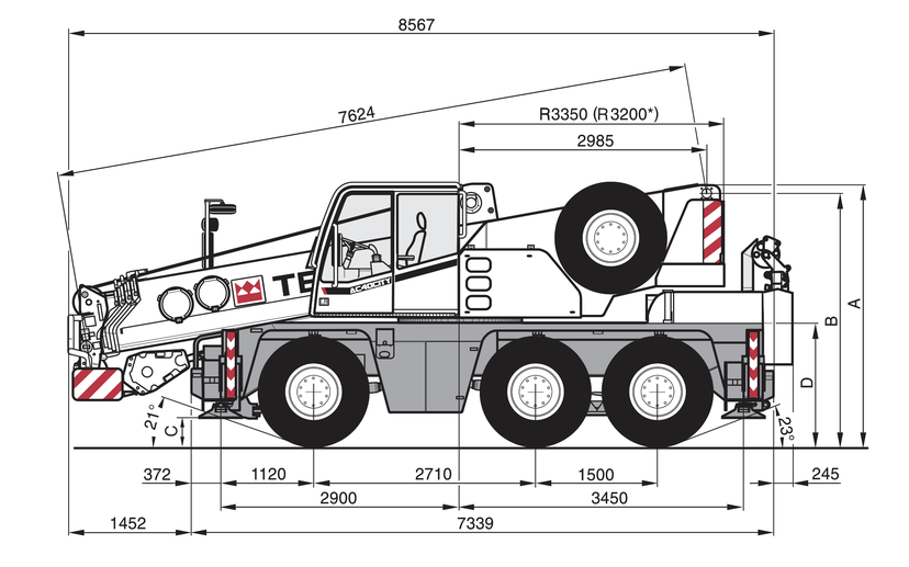 Díky svým kompaktním rozměrům je tento jeřáb vhodný pro práce v halách. Jeřáb je možné vybavit montážní špičkou ,která se využívá pro práci s omezenou výškou, například pod stropem. Díky tříosému podvozku, pohonu všech kol a nižší hmotnosti zvládá jeřáb i jízdu v hůře přístupném terénu. Výborná manévrovatelnost jeřábu v omezeném prostoru je zajištěna díky řiditelnosti všech náprav.