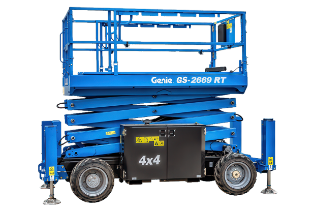 Nůžkové dieselové plošiny jsou vhodné především pro práci v exteriérech. Díky pohonu 4x4 a uzávěrce diferenciálu lze tyto plošiny také použít pro práci v terénu a na nezpevněném povrchu. Plošiny jsou vybavené stabilizačními podpěrami, které zaručují celkovou bezpečnost při práci. Níže uvedené dieselové nůžkové plošiny s výškou zdvihu až 18 metrů nabízíme ke krátkodobému i dlouhodobému pronájmu.